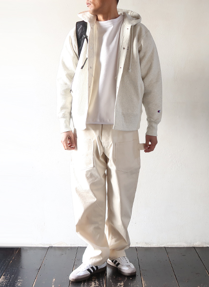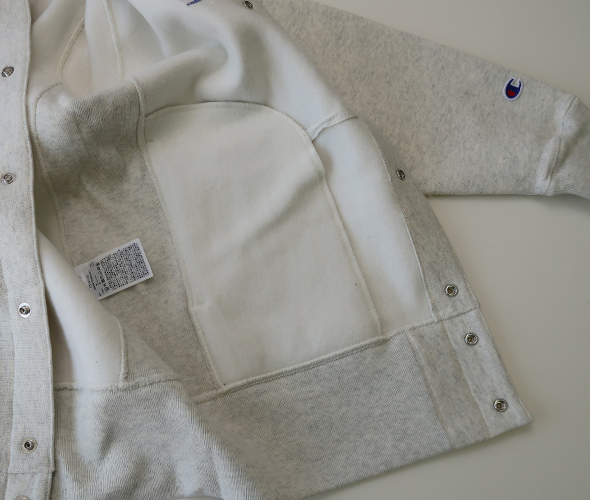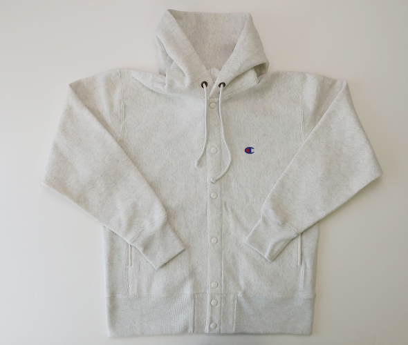 スナップボタン仕様で、これからの季節にぴったりなシャツやカットソーにさらっと羽織れる、オーセンティックなデザインのフーデッドスウェットシャツ。チャンピオンを代表する製法の「REVERSE WEAVE®」を使用した、環境に配慮して生産されたサステナブルなアメリカ綿を100%使用した 11.5oz. Terry Fleece素材。タフで着こむほどに風合いが増していきます。ネームタグには1970年代モデルの「青単タグ」を採用しています。