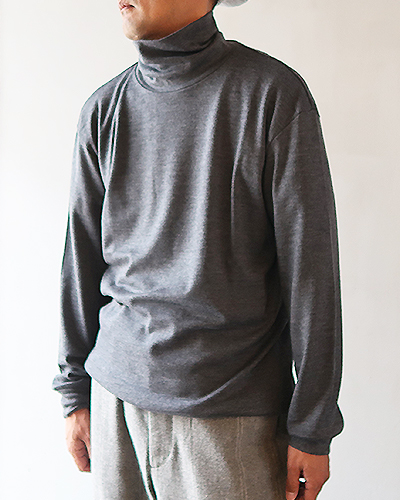 スーパーエクストラファインメリノといわれる超極細繊維の素材をジャージー生地用に超極細番手に梳いた梳毛糸を使用して編み上げた、ウールカットソー。ウールとは思えないほどのツヤ感とスムースな肌触りは、同じ素材のニットウェアでは味わえない贅沢な触り心地です。インナーでも、一枚でも活躍するアイテムです。