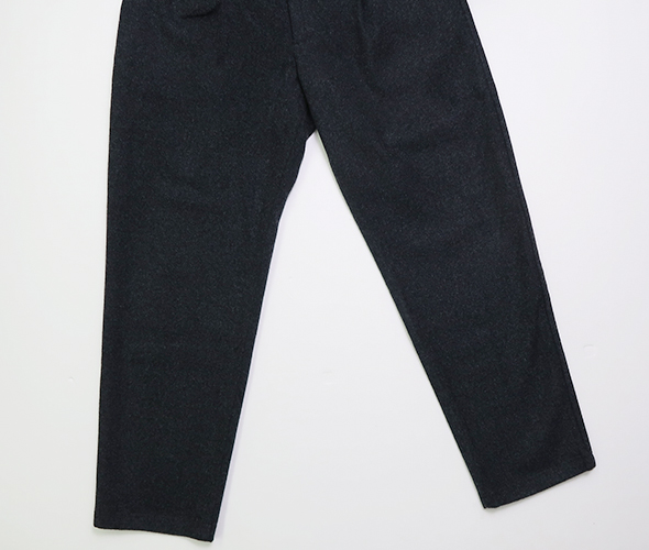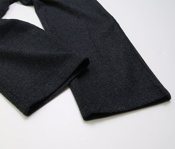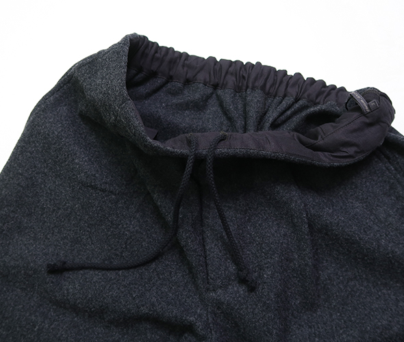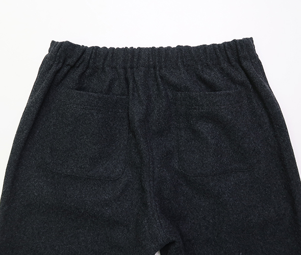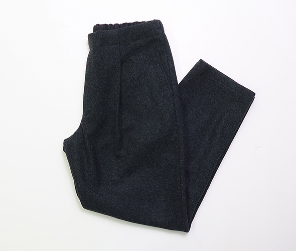 信頼のジロンラムウールによるメルトン生地のイージーパンツ。縮絨をかけて仕立てた生地は、やわらかくてなめらかな肌触り。ウールならではの暖かさを存分に味わっていただけるコムアーチらしい一本です。