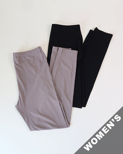 コットンの柔らかさを残しつつ、強撚糸特有のしゃりしゃりとした風合いも併せ持つカットソーのレギンス。適度な薄さの生地で、すとんとした落ち感が生まれやすく、ベーシックなアイテムもどこか上品な印象に。