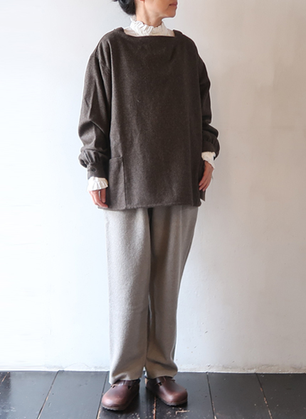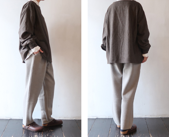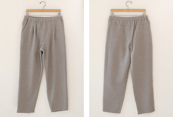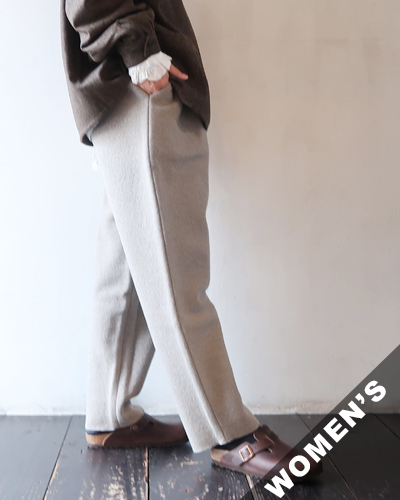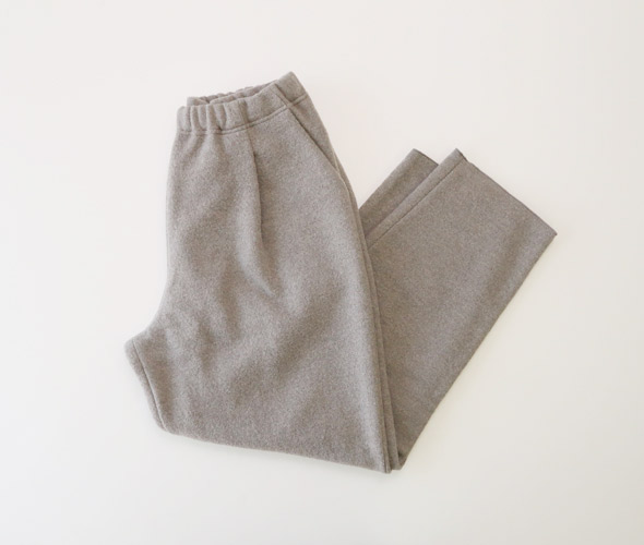 イージーな穿き心地と、暖かな素材感で、とてもきれいなシルエットが魅力です。同素材のショートコートとセットアップもおすすめです。