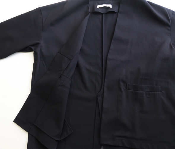 程よい厚みとしなやかさを兼ね備えたコットン素材で仕立てたevam evaのジャケット。適度なハリのある上品な生地で、様々なシーンで活躍してくれそう。 襟元はノーカラーですっきりとした印象。 同素材のパンツと合わせたセットアップスタイルがお勧めです。