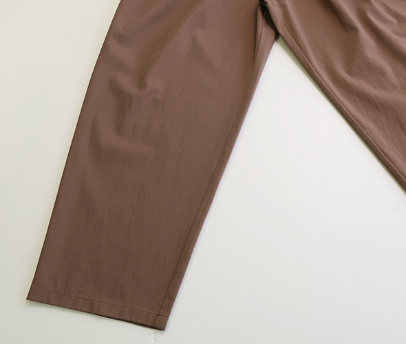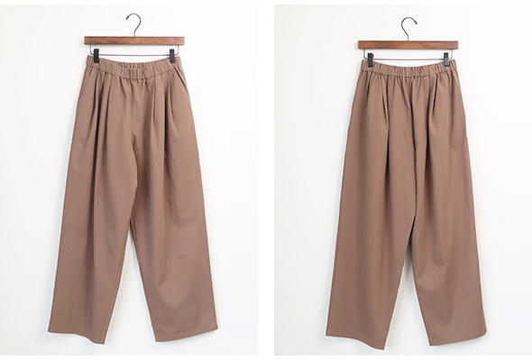 ラフな印象のシルエットながらドレープの陰影が美しいダブルタック入りのワイドパンツ。程よい厚みとしなやかさのあるコットン素材の生地は柔らかなハリのある上品な質感で、オケージョンにもお使いいただけます。