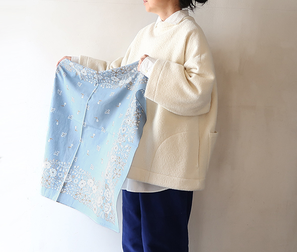 バンダナよりは少し大きめのサイズ感なので、何かと便利。