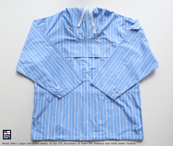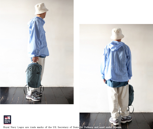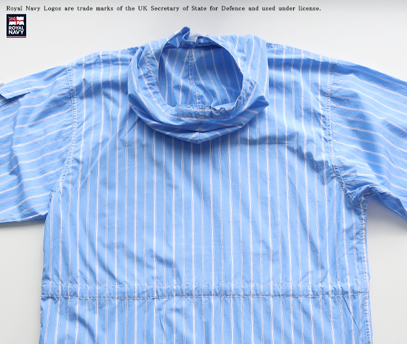 イギリス軍の士官学生に支給されていたスモックを、軽やかなシャツ地ストライプに置き換えた、カデットスモックパーカー。ボタンフラップによるスクエアポケットも備わって、ミニマルにまとまった一枚です。ウエストや裾の紐を絞ることで、その日の着こなしに合わせてシルエットを変えられるので、スタイリングの幅も広がります。フード付きでカジュアルさがありつつも、ラフになりすぎないシャツ素材で、大人カジュアルな雰囲気。
