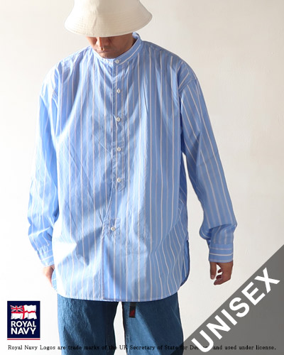 イギリス軍パラシュート部隊のウールシャツをさらりとした清潔感のあるストライプコットンで現代風に再現されています。 通常の前開きシャツとは異なり、ウエストにボタンが付いている独特なデザインです。 やや幅広めのバンドカラーはスッキリとしつつも上品な印象で、ほんのりと光沢とハリがあり、さらっとした肌触りが心地よく、密に織られたハリ感のあるコットン生地は爽やかで軽い着心地で、デイリーに着やすい素材です。 ゆとりのあるサイズ感で1枚で様になります。