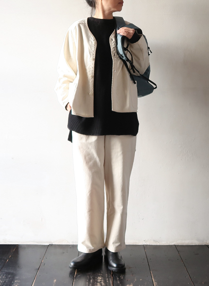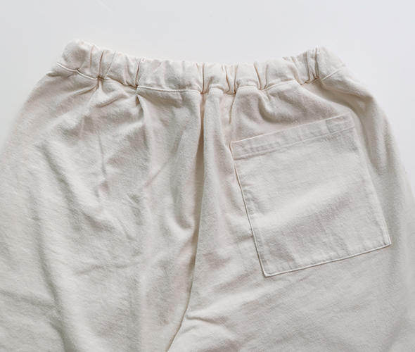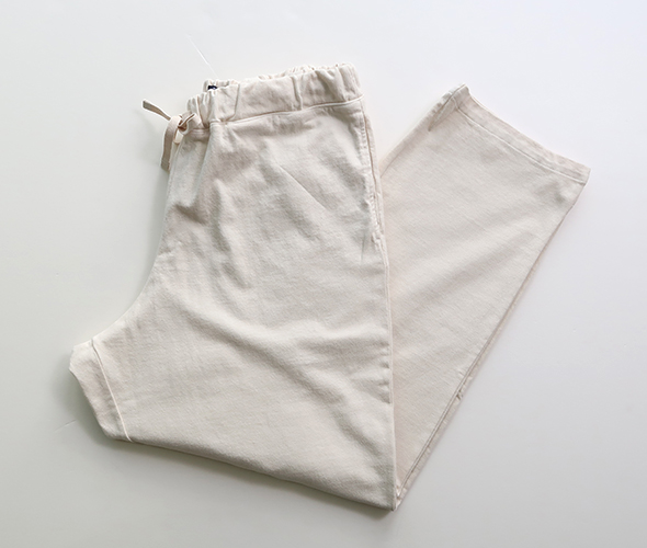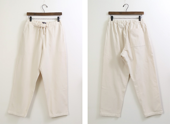 ウエストが紐のイージータイプで、テーパードかかったすっきりとしたシルエットながら程良いゆとりがあり、着心地がとても良いです。