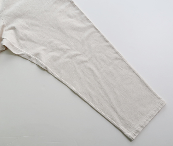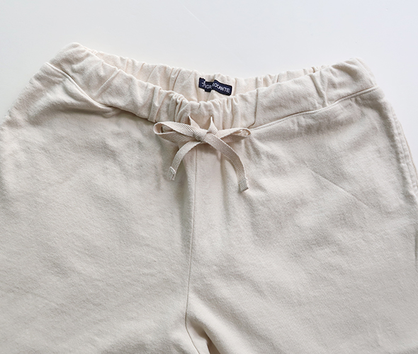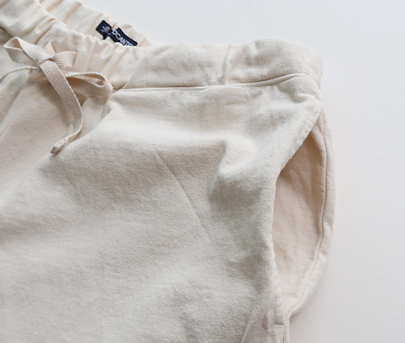 定番人気のヘビーオンスカットソー生地、ミディアムハード天竺で仕立てたスウェットパンツ。股上は深めで、楽な穿き心地ですが、シルエットはすっきりとしているので、ラフすぎない印象に。普段使いに重宝するアイテムです。