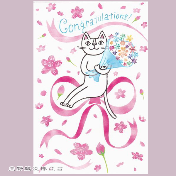 おかべてつろうポストカード 1枚 おめでとう笑顔の日 猫 はがき【レターパックプラス可40個まで・レターパックライト可20個まで・メール便可10個まで】A