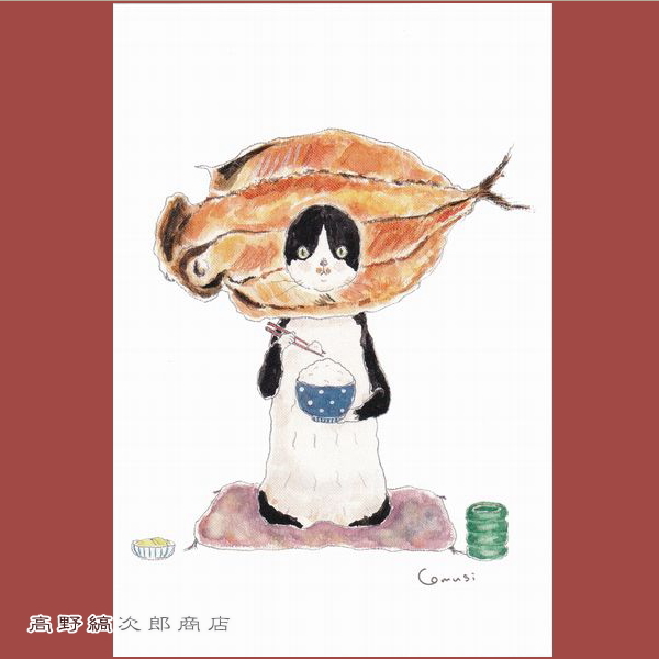 TOCORO COMUGIポストカード 1枚 あじの開きにゃんこ ネコはがき【レターパックプラス可40個・レターパックライト可20個・メール便可10個まで】A