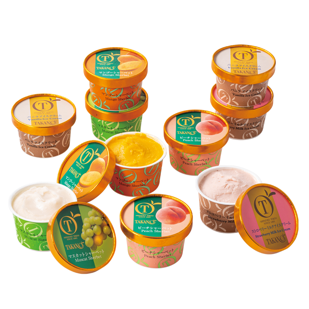 | 内容量 | アイスクリーム100ml(バニラ、ストロベリーミルク×各2)、シャーベット100ml(マスカット、ピーチ、マンゴー×各2) |