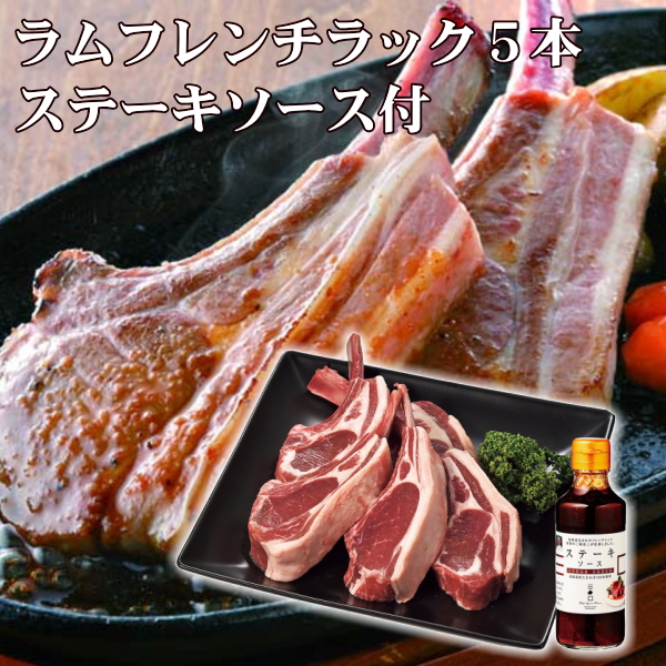 【商品内容】ラムフレンチラック(オーストラリアまたはニュージーランド産)/5本、三國監修ステーキソース/200ml