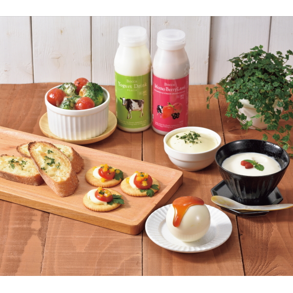 牧家人気の白いプリンやラッシー、杏仁豆腐、チーズソースをセットにしました。