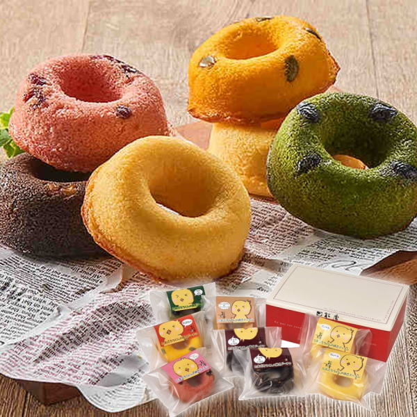 ●商品内容:たまごろうくんの焼きドーナツ(プレーン・チョコ&くるみ)/各2個、たまごろうくんの焼きドーナツ(ベリーベリー・かぼちゃ・抹茶&黒豆・キャラメル&アーモンド)/各1個