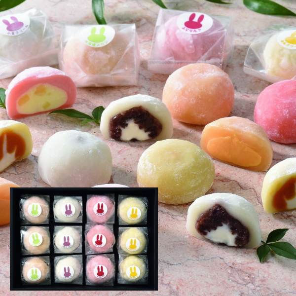 セット内容 ふわふわ大福(北海道メロン・小豆クリーム・南瓜クリーム・ふじりんご)/各3個