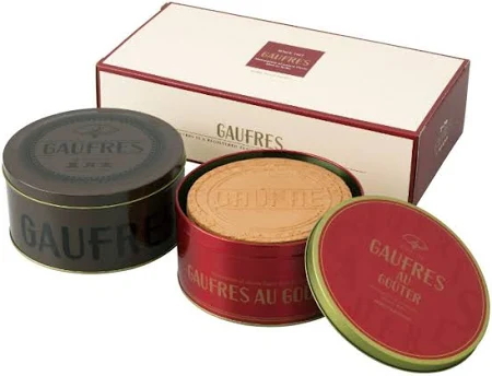 赤い缶『ゴーフル・オ・グーテ』は、紅茶・抹茶・コーヒーの豊かなお茶風味が薫ります。