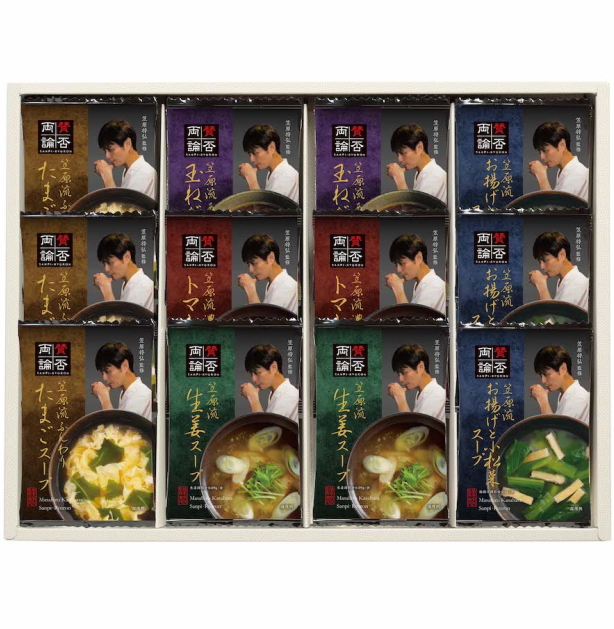 内容 ●ふんわりたまごスープ×1、あめ色玉ねぎスープ×1、お揚げと小松菜スープ×2、味付け海苔5枚×1