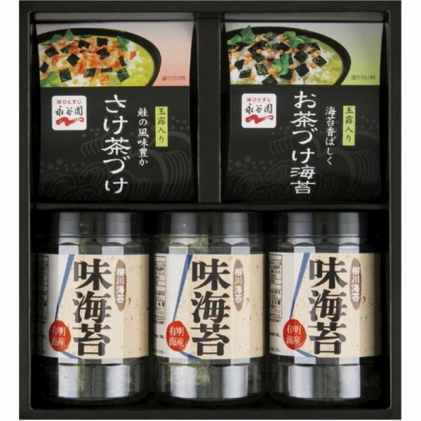 永谷園の人気アイテム「お茶づけ」「有明海産の味付け海苔」を組み合わせたギフト。 商品情報 ●商品内容 柳川海苔味付け海苔(8切32枚)×2、永谷園お茶づけ海苔(6.3g×3袋)×1 ●パッケージサイズ 13×26.5×8cm ●賞味期限:常温1年