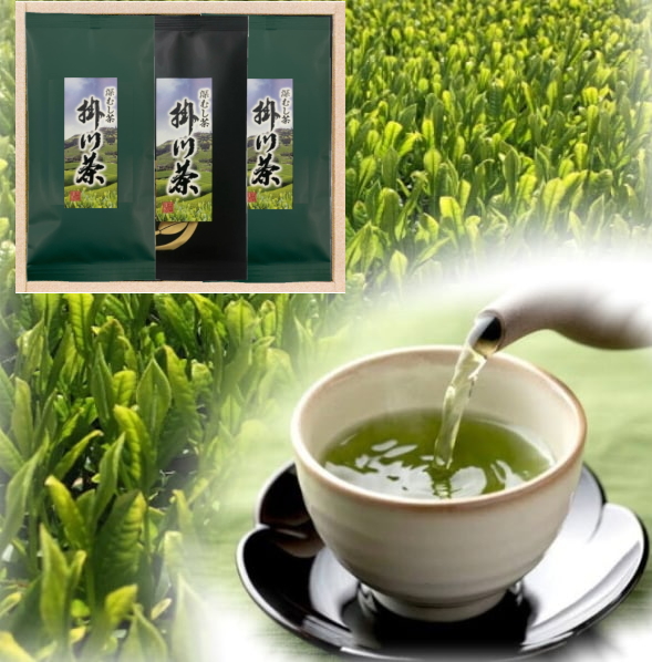 荻野商店 静岡県産 深蒸し茶 掛川茶(緑)80g入り 3袋 さわやかな香りと緑あふれる味わい 箱サイズ:約24.8×28×4.3cm 原産国 日本