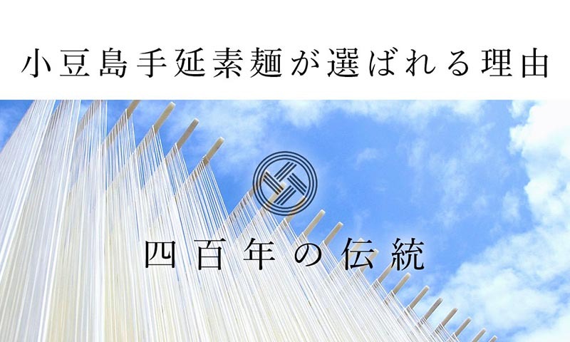 小豆島には、小麦の栽培に適した気候や瀬戸内海の塩、そうめん作りに必要なごま油が豊富にとれるなど、そうめん作りに最適な気候風土(寒期に空気の澄んだ瀬戸内の寒風が吹き寄せる中での天日干し)があり、以来、小豆島の職人は頑(かたく)ななまでに、昔ながらの伝統手延べ製法を守り続けています。