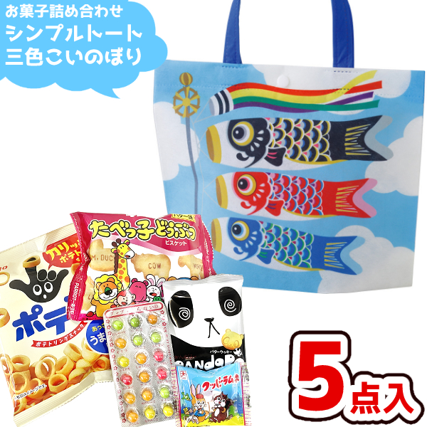 こどもの日に合わせて、三色のこいのぼりが描かれたミニトートにお菓子を詰め込みました!