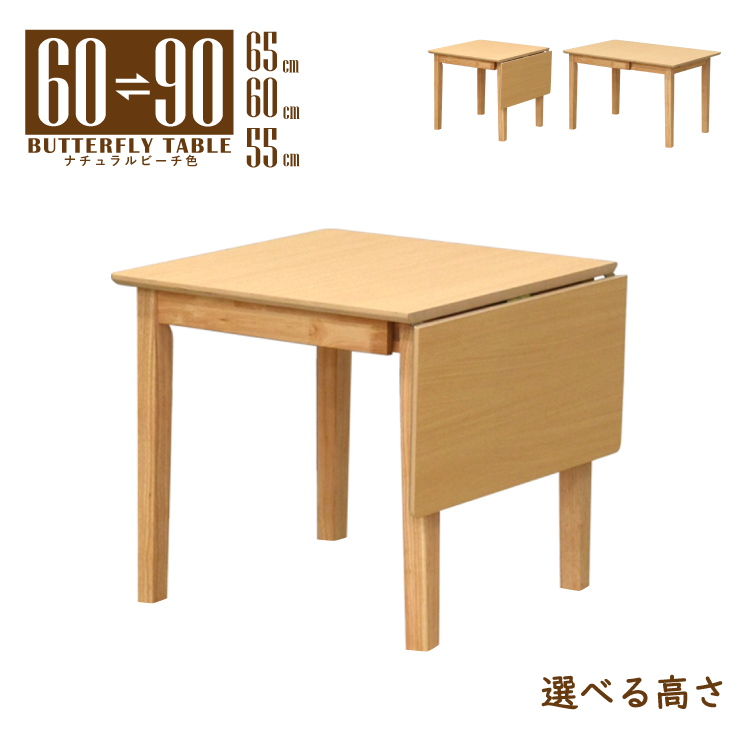 ローテーブル 脚カット セミオーダー 伸縮式テーブル 高さ65cm 60cm 55cm 幅60/90cm ナチュラルビーチ色 木製 mac90bata-360nbhcut バタフライ 2s-1k-179 hs