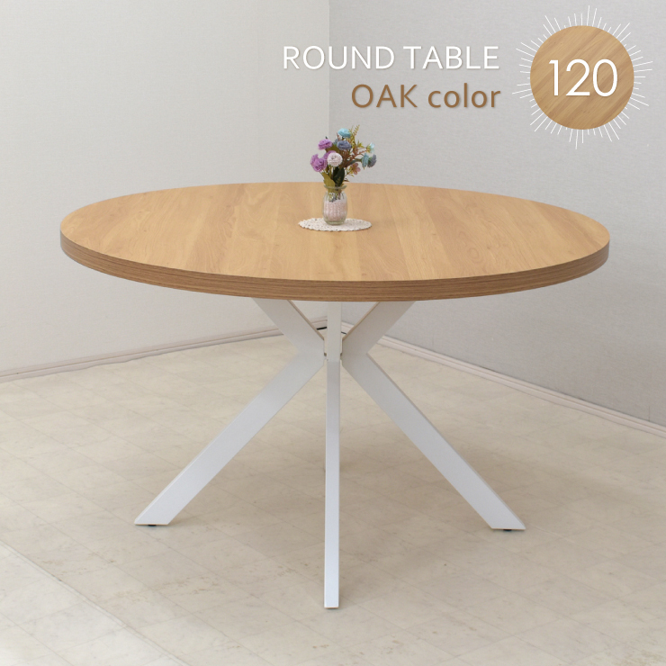 工場アウトレット品 丸テーブル 幅120cm 4人用 ml120-369ok-wh mblm オーク色 白脚 クロス脚 スチール脚 メラミン化粧板 7s-2k sm