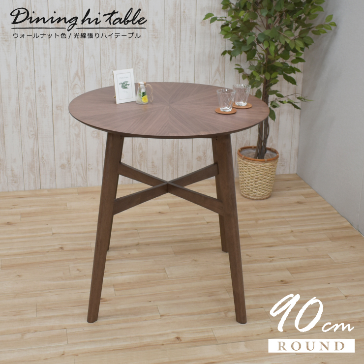 高さ91.5cm 円形 ダイニングテーブル ハイタイプ 幅90cm 光線張り 2人 sbbt90-359wal ウォールナット色 バースト 矢張り 3s-1k-200 yk