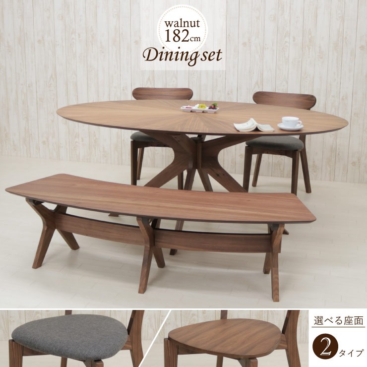 楕円 ダイニングテーブルセット 4点セット sbkt182-4-cote351wn 359 幅182cm ウォールナット アウトレット お客様組立品 18s-4k hr