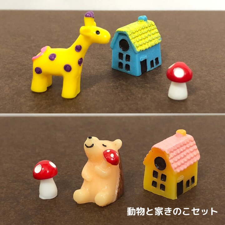 動物と家きのこセット 動物 フィギュア テラリウム フィギュア ミニフィギュア コケリウム ジオラマ 箱庭 かわいい おしゃれ ワークショップパーツ 苔盆栽 苔玉
