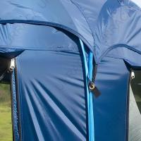 【ポップアップテント】:カーテントは車との連結部分を完全に閉じることができない場合が多いですが、デッドスペースが少ない構造のため、大容量かつ小型の設計となっており、大きな3面の窓にはメッシュスクリーンが付属し、虫の進入を防ぐとともに、風や美しい景色を楽しめます。