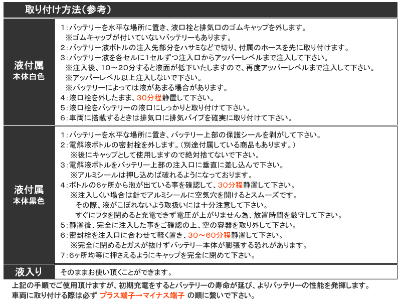 バッテリータイプ:密閉式(MF) 液入