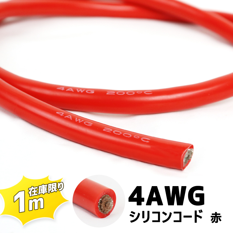 バッテリーケーブル シリコンケーブル 4AWG 1m 電源 配線 インバーター バッテリー レッド 赤