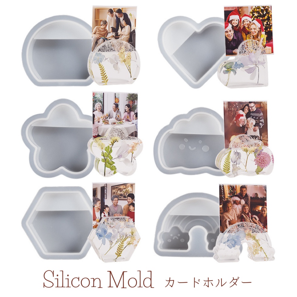 シリコンモールド カードホルダー カードスタンド 写真立て 星 ハート 雲 虹 花 【メール便対応】 UVレジン レジンクラフト ハンドメイド 手作り 手芸