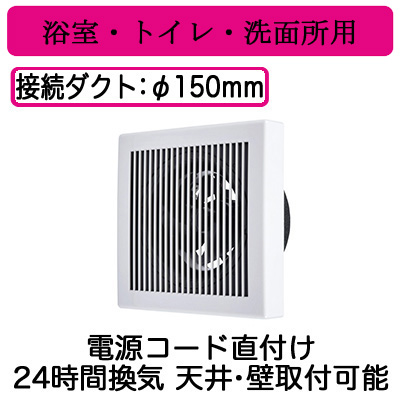 三菱電機 V-12PFL8 パイプ用ファン 24時間換気機能付 角形格子グリル 浴室・トイレ・洗面所用 電源コード直付け
