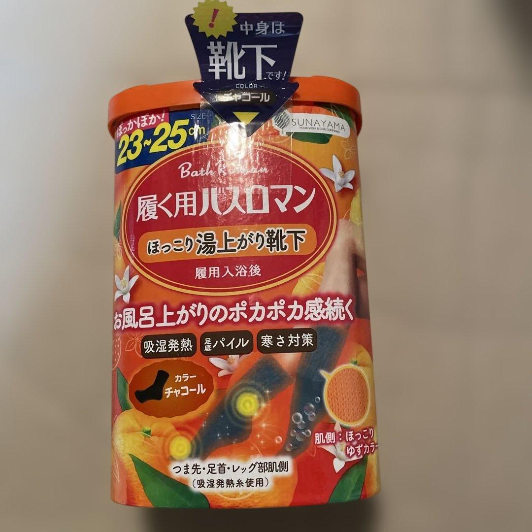 ? お風呂上がりの新習慣『履く用バスロマン』で足元あったか。入浴で足元の温かさを眠る直前までしっかりと保温してぐっすり眠りたい。そのためにおすすめなのが『履く用バスロマン』です。フット部はフワフワのパイル編み+レッグ部はやさしく伸びる2重構造の湯上り専用靴下です。お風呂上がりの湯上りソックスで足元あったか習慣 あなたも始めてみませんか?? お風呂上がりの足元をしっかりと温める「履く用バスロマン」冷えを感じやすいつま先と冷えに関するツボが多い足首を吸湿発熱糸でしっかりと保温。レッグ部は2重構造+内側は特に吸湿発熱性の高い糸 ホットハウスWを使用しています。お風呂上がりのあたたかさを眠る直前までキープする湯上り専用ソックスです。? 暑い日のクーラー冷え、寒い日の底冷え対策にもおすすめ!テレワーク、冷えたフローリングでの家事などお風呂上がり以外の足元が冷えやすい場面でも着用いただけます。伸びが良く柔らかい肌触りの靴下でふくらはぎから足先まであったか素材が包んでくれるので、寒さが苦手な方におすすめの靴下です。? プレゼント・ギフトにおすすめ。入浴剤にそっくりな見た目のパッケージはプレゼント・ギフトにも最適です。冷えに悩む方、大切な人への贈り物に『履く用バスロマン』お誕生日、母の日、敬老の日、クリスマス…もちろん頑張った自分へのご褒美にも。大切なあの人に、大切な自分に、「履く用バスロマン」のぬくもりを。? 商品の特性上、この商品は保温性に優れている反面、着用や洗濯での摩擦による毛玉が発生しやすい性質がございます。毛玉が気になる場合は毛玉取り器にてお手入れをしてください。? サイズ:23~25cm (レディース向け ) 素材構成:アクリル・レーヨン・ポリエステル・ナイロン・合成繊維(ホットハウス)・ポリウレタン
