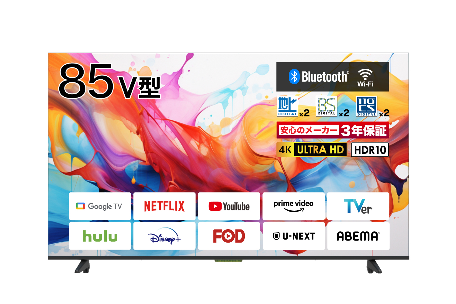 BLUEWIDE 85V型 4K HDR Google TV 液晶 テレビ Wチューナー内蔵 スマートテレビ Bluetooth5.0 Wi-Fi ネット動画対応 VESA 壁掛け 85インチ 85型