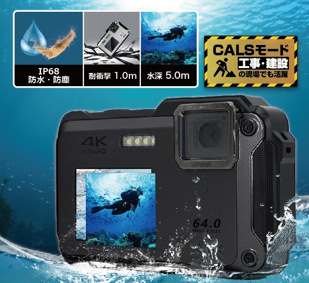 BLUEWIDE 防水 コンパクトデジタルカメラ IPX8 防塵 有効画素1300万 4K動画 CALSモード Wi-Fi デジタルズーム16倍 オートフォーカス デジカメ 工事現場 ブラック