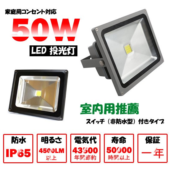 50W 黒 シルバー スイッチ付き LED投光器 500W相当 防水 LEDライト 作業灯 集魚灯 防犯 駐車場灯 看板照明 訳アリ商品 パッケージなし