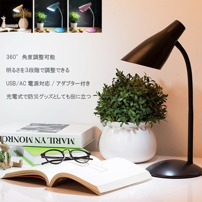 LEDデスクライト 三段階調光USB/AC電源搭載 充電可能 LED TOUCH調整 省電力 スタンドライト