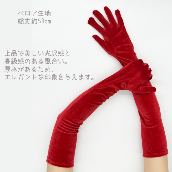 b060【ダンス衣装】53cm ベロア生地 大人用 ロング手袋 フォーマル ロンググローブ ダンス小道具 女性用 仮装 文化祭体育祭演出音楽会ダンス発表会 舞台ステージ