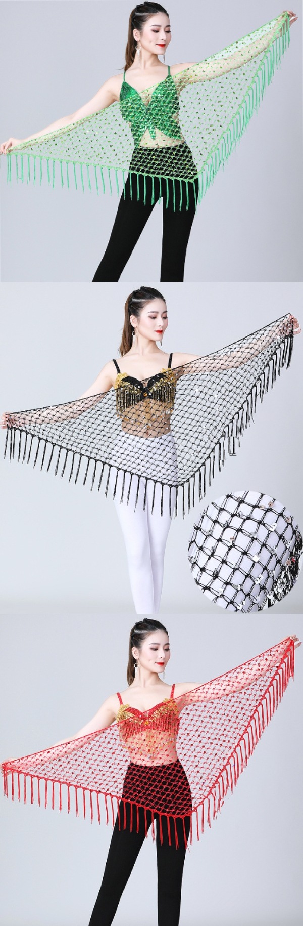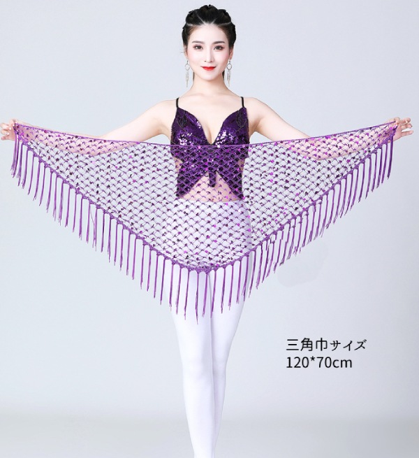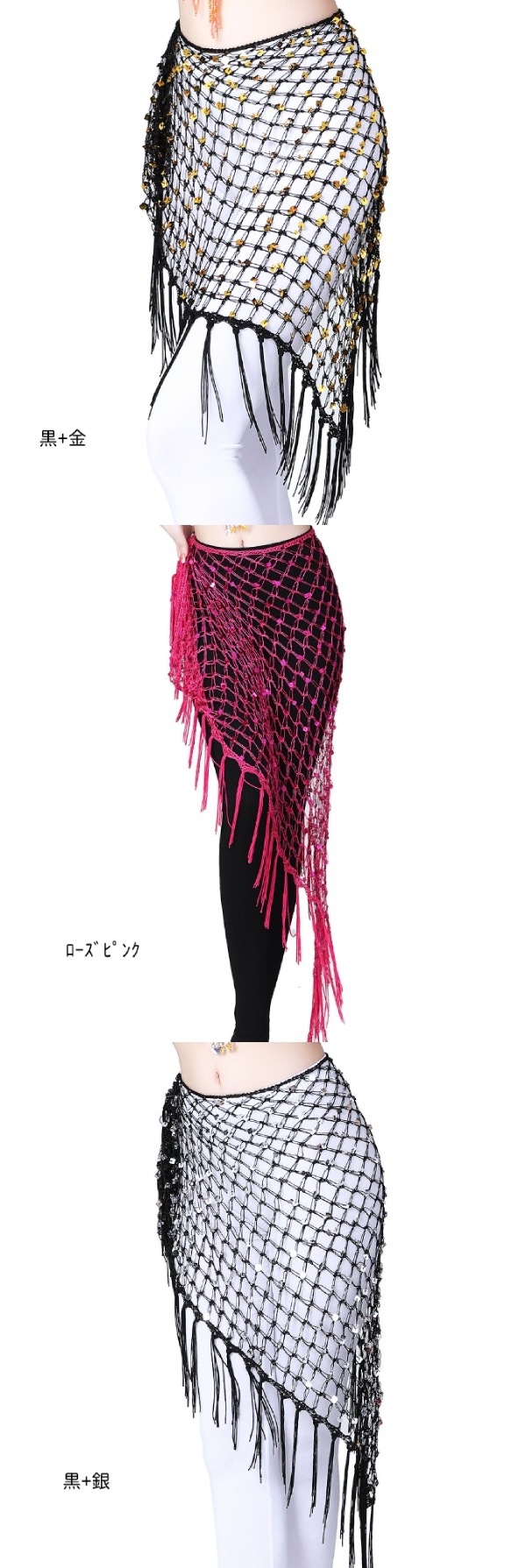 ccyc028【ダンス衣装】ベリーダンス衣装 ヒップスカーフ 全15色 アクセサリー ダンス衣装 練習服 レッスン着 メッシュ素材 三角巾 キラキラ 煌びやか