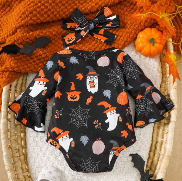 mw-g031ハロウィン 衣装 2025年新作【髪クリップ+ロンパース】カバーオール コスプレ 子供 ベビー 赤ちゃん 仮装用 ドレス 子供 着ぐる 仮装 コスチューム