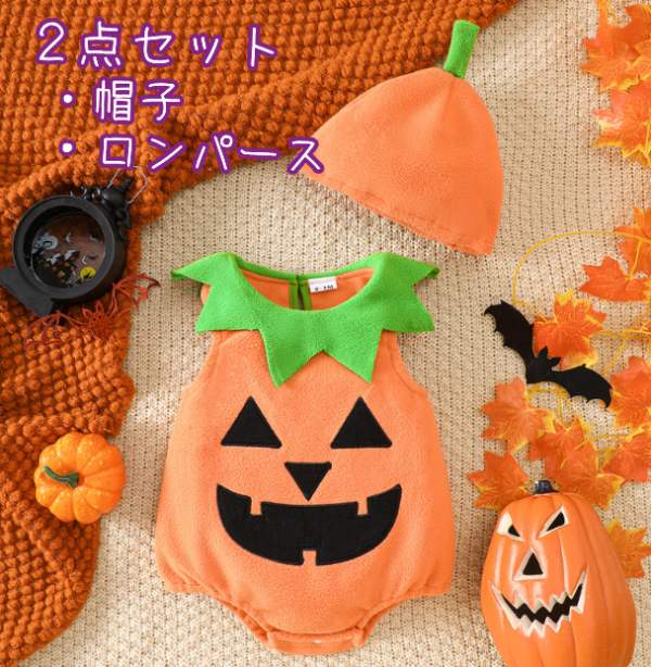 mw-g109 ハロウィン衣装 かぼちゃ南瓜 2025年新作【帽子+ロンパース】カバーオール コスプレ ベビー 赤ちゃん 仮装用 子供 着ぐる コスチュームクリスマス