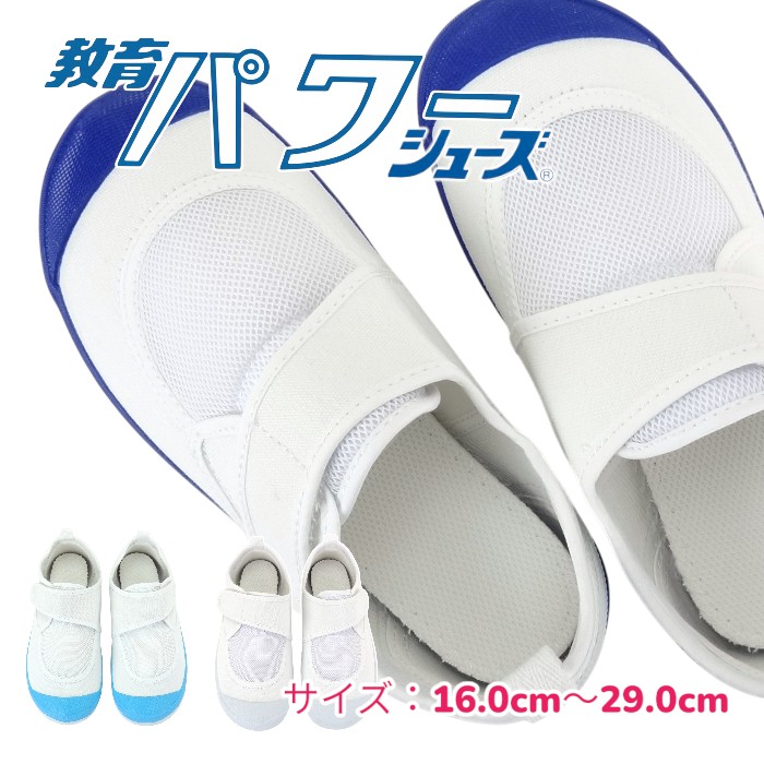 教育パワーシューズ 上履き 青 白 子供 女の子 男の子 大人 幼稚園 小学校 中学校 幅広 体育館履き 校内履き 内履き 上靴 うわぐつ 面ファスナー 教育シューズ