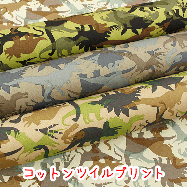 『シルエットダイナソー』コットンツイルプリント生地/布/恐竜/ダイナソー/恐竜柄/シルエット/迷彩/迷彩柄/男の子/かっこいい/入園入学/