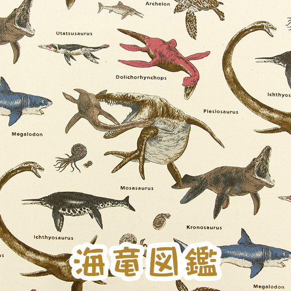 生地 布 魚 コットンこばやし 「海竜図鑑」 生成り カス残し コットンツイルプリント おさかな 海龍