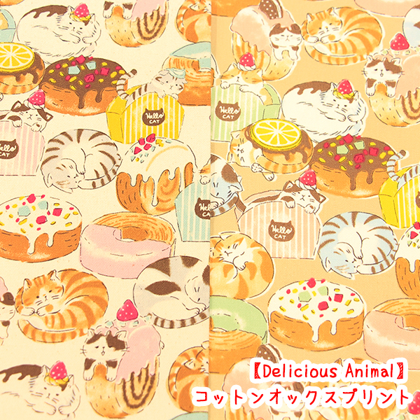生地 布 猫 KOKKA Delicious Animal ドーナツキャット コットンオックスプリント レトロ柄 ネコちゃん コッカ