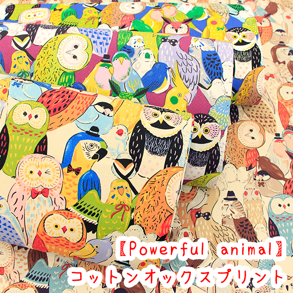 生地 布 鳥 KOKKA Powerful animal パワフルアニマル バード コットンオックスプリント フクロウ ハシビロコウ シマエナガ インコ