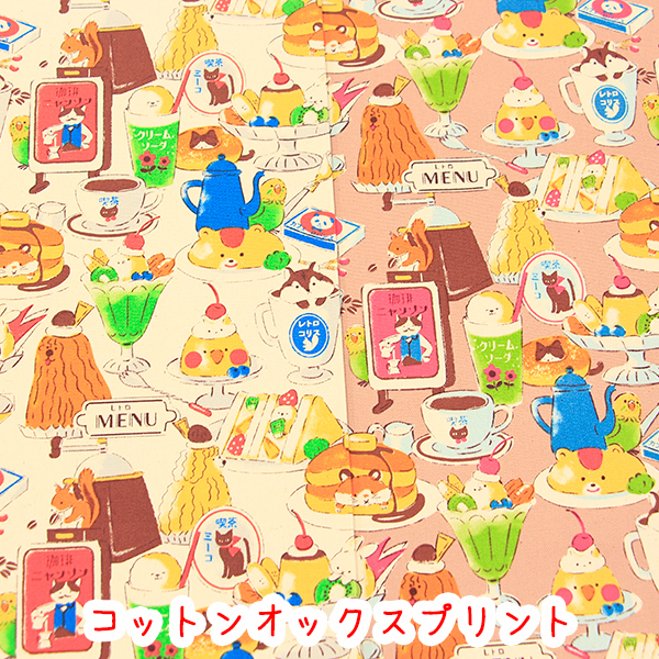 生地 布 Delicious Animal アニマル純喫茶 コットンオックスプリント ホットケーキ クリームソーダ アニマル